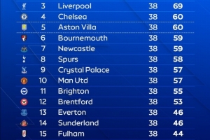 體育資訊10月31日訊 Opta數(shù)據(jù)給出了最新一期的2025/26賽季英超聯(lián)賽最終排名預測,阿森納奪冠。