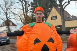 基米希裝扮成鬼怪南瓜,他在社交媒體上曬出照片,配文:“各位今日也都盛裝打扮了嗎?”