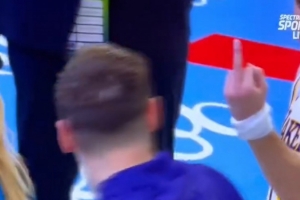 GIF-東契奇和里夫斯互豎中指