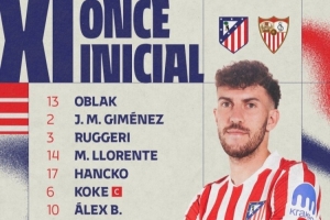 體育資訊11月1日訊 西甲第11輪,馬競主場對陣塞維利亞。賽前,官方公布了本場的首發(fā)名單。