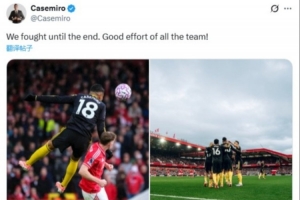 賽后,卡塞米羅在社交媒體曬出自己頭球以及與隊友慶祝的照片,并配文寫道:“我們戰(zhàn)斗到了最后,全隊都付出了很棒的努力!”