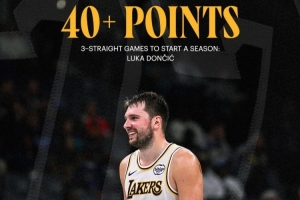 本賽季,東契奇出場(chǎng)三場(chǎng)比賽,他分別拿到了43分、49分和44分。