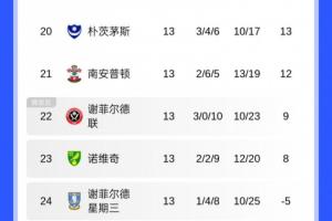 上賽季從英超降級的三支球隊(duì)無一在附加賽區(qū),伊普斯維奇少賽1輪位列第9,萊斯特城僅第14,南安普頓更是差點(diǎn)掉進(jìn)降級區(qū),目前位列第21。