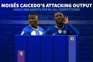 體育資訊11月5日訊 本賽季凱塞多在進(jìn)攻端發(fā)揮越來(lái)越好,德轉(zhuǎn)也盤(pán)點(diǎn)了球員生涯每90分鐘參與進(jìn)球數(shù)據(jù)(各項(xiàng)賽事進(jìn)球+助攻),其中來(lái)到英超后逐年遞增,具體如下: