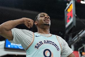 在上半場的比賽中,馬刺球員凱爾登·約翰遜手感火熱,他替補(bǔ)出戰(zhàn)了14分鐘,3投3中,罰球4中4,得到10分1籃板1搶斷,沒有失誤。