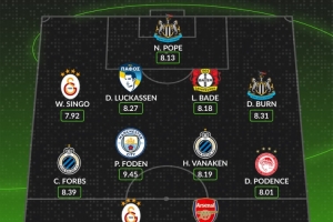 體育資訊11月6日訊 WhoScored列出了歐冠本周最佳陣容,奧斯梅恩、梅里諾、福登、丹-伯恩在列。