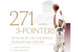 體育資訊11月8日訊 騎士官方發(fā)布紀(jì)錄,梅里爾以替補(bǔ)身份命中率271記三分,超越科沃爾排名騎士隊(duì)史第五。