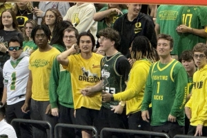 今日俄勒岡大學以67-63戰(zhàn)勝萊斯大學,取得開季兩連勝,小吧來到現場觀戰(zhàn),看到現場有很多林葳的球迷,一個外國人還穿著同曦球衣。