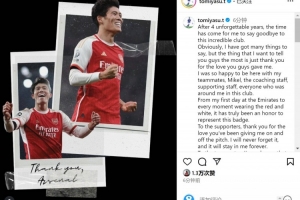 體育資訊7月4日訊 富安健洋更新社媒動態(tài),與阿森納告別。