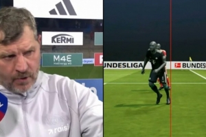 賽后,柏林聯(lián)主帥鮑姆加特向記者抱怨:“第一個球應(yīng)該算作進球。僅僅因為5毫米的差距就判越位——我們這里談及的真的是5毫米——有些人簡直是瘋了?!?/p>