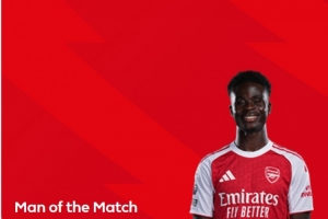英超官方在賽后宣布,薩卡以33%得票率被球迷票選為本場(chǎng)比賽的全場(chǎng)最佳球員。