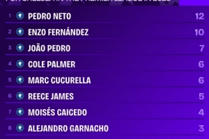 2025年切爾西隊內(nèi)英超參與進(jìn)球榜: