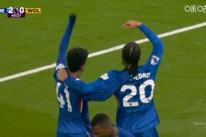 英超第11輪,切爾西3-0狼隊(duì),兩位巴西國(guó)腳佩德羅與埃斯特旺慶祝