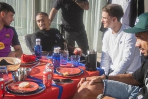 阿勞霍積極倡導(dǎo)這類團隊活動,拉菲尼亞也在Instagram中分享了多張聚餐照片。我們可以看到阿勞霍與隊友們以及包括理療師在內(nèi)的俱樂部員工圍坐在餐桌旁,桌上鋪著藍紅相間的桌布,彰顯了對俱樂部的熱愛。