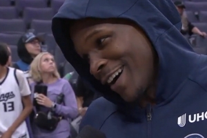 體育資訊11月10日訊 NBA常規(guī)賽,森林狼144-117大勝國王。賽后愛德華茲在場(chǎng)邊接受了采訪。