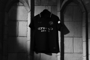 全黑設(shè)計(jì)靈感源自俱樂(lè)部已知最古老的球衣,結(jié)合金屬細(xì)節(jié),以頌揚(yáng)曼城永恒的精髓。