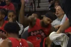 “很多人都認(rèn)為他應(yīng)該站起來道歉。我理解他的沮喪,他在比賽中摔倒得很尷尬,而且那是一場艱難的比賽,他們有很多失誤,最終沒能贏得比賽。但我不認(rèn)為這是正確的回應(yīng)方式。有人說他像三歲小孩一樣,確實如此,這種事情經(jīng)常發(fā)生在有小孩的家庭里。但我認(rèn)為這不是合適的反應(yīng)。他應(yīng)該對此道歉,但他沒有這樣做,沒有任何反應(yīng)。我不知道他當(dāng)時是怎么想的,但作為一個普通人,我認(rèn)為他應(yīng)該有所表示。他不應(yīng)該坐在那里看著大家清理,尤其是當(dāng)水濺到隊友臉上時。他應(yīng)該幫助清理,而不是讓別人的生活變得更加困難。也許這是因為他是超級富豪,覺得這些人理應(yīng)為他服務(wù)。但我們不應(yīng)該輕易下結(jié)論。他看起來非常沮喪,可能只是心情不好而已。”Donnie Freeman表示。