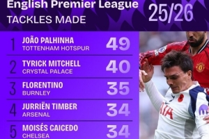 本賽季英超搶斷榜: