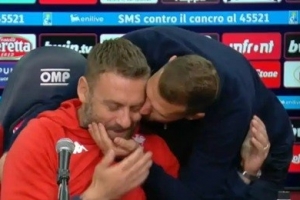體育資訊11月11日訊 在上輪意甲聯(lián)賽的賽后新聞發(fā)布會上,哲科“強(qiáng)吻”昔日隊友德羅西。