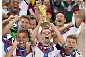 德國隊社媒曬出拉姆捧起大力神杯的照片,配文:“祝2014年世界杯冠軍拉姆生日快樂!”