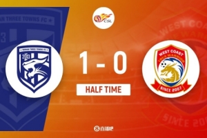 上半場(chǎng)補(bǔ)時(shí)6分鐘,武漢三鎮(zhèn)1-0青島西海岸。