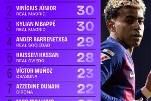 體育資訊11月12日訊 巴薩亞馬爾、皇馬的姆巴佩和維尼修斯,他們在過人突破方面,都有著非凡的天賦。在2025-26賽季西甲聯(lián)賽中,據(jù)Squawka數(shù)據(jù)統(tǒng)計(jì),亞馬爾在過人次數(shù)排行榜單居首。