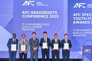 北京時(shí)間11月11日,2025年亞足聯(lián)草根足球大會(huì)及“2025亞足聯(lián)草根足球特殊貢獻(xiàn)獎(jiǎng)”頒獎(jiǎng)儀式在馬來(lái)西亞吉隆坡隆重召開(kāi)。由中國(guó)足球協(xié)會(huì)推薦的譚杰榮獲“2025亞足聯(lián)最佳草根足球領(lǐng)導(dǎo)者獎(jiǎng)”,青苗聯(lián)賽摘得“2025亞足聯(lián)草根足球最佳賽事獎(jiǎng)”,為中國(guó)草根足球贏得國(guó)際贊譽(yù)。