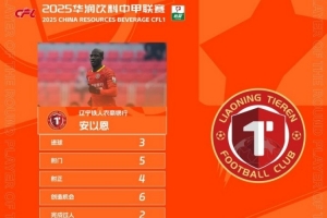 中甲聯(lián)賽第30輪比賽中,遼寧鐵人主場對陣佛山南獅。上半場第40分鐘,安以恩小角度墊射得分打破僵局。下半場第69分鐘,安以恩推射建功。第76分鐘,安以恩帶球突入禁區(qū)晃過門將后推射破門,幫助球隊(duì)鎖定勝局。第81分鐘,安以恩挑傳助攻隊(duì)友再下一城。最終,安以恩上演帽子戲法且錄得1次助攻,幫助遼寧鐵人農(nóng)商銀行5-0大勝對手。
