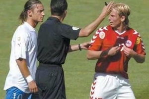 在2004年歐洲杯首輪小組賽,意大利0-0戰(zhàn)平丹麥。比賽中托蒂多次被犯規(guī)后失去冷靜,對(duì)丹麥球員鮑爾森吐口水。賽后托蒂被追加禁賽3場,而意大利也在隨后的小組賽未能出線。托蒂成為了意大利從歐洲杯出局的最大責(zé)任人。