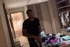 阿德托昆博對此并不是很高興,這位雄鹿的超級巨星一度懇求妻子把手機放下:“寶貝,全世界都在看著呢。”