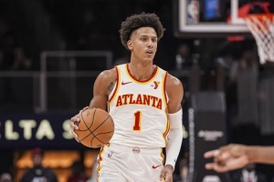 杰倫·約翰遜上季肩傷報銷前,是這個時代的完美策應(yīng)鋒:全能身手、無短板、適配任何隊友,正逼近生涯首次全明星。他會傳球、能接球投、快攻飛天、籃板狂魔且多位置防守,而且沒有明顯到足以給隊友加負擔(dān)的弱點。如果他有一手擺脫中投,再加一手背打,簡直可以去問火箭: