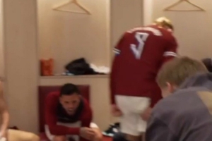 比賽結(jié)束之后,哈蘭德與隊(duì)友在更衣室內(nèi)載歌載舞慶祝,現(xiàn)場(chǎng)氛圍十分熱烈。
