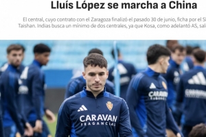 關(guān)于洛佩斯的去向,薩拉戈薩體育總監(jiān)切馬-因迪亞斯一周前表示:“這是球員的個人決定,轉(zhuǎn)會市場充滿不確定性。他的合同6月30日到期,雙方都是自由身。若未來有機(jī)會再合作,那就太好了?!?/p>