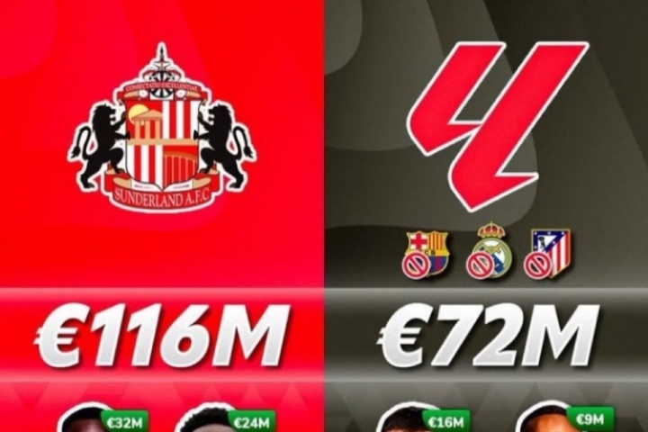 據(jù)外媒統(tǒng)計,桑德蘭今夏已經(jīng)支出1.16億歐(已官宣轉(zhuǎn)會),這一數(shù)字甚至超過了西甲除皇薩競之外,其余17隊的總和,17支球隊總支出目前僅為7200萬歐。
