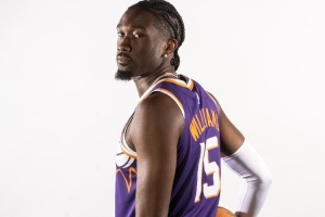 談及 馬克?威廉姆斯能在防守端從1號(hào)位防到5號(hào)位的能力,古德溫表示:“他是這么跟我們說的,我相信他。他不僅說了,還一直在用行動(dòng)證明?!?/p>