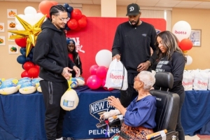 德安德烈·喬丹和米卡·皮維代表球隊向新奧爾良社區(qū)的居民發(fā)放火雞和感恩節(jié)食材,提前預(yù)祝球迷節(jié)日快樂。