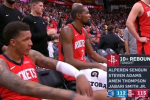 本場比賽火箭四人籃板上雙,據現場統(tǒng)計,這是自隊史2001年來首次。