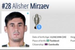 體育資訊11月17日訊 根據(jù)國(guó)際足聯(lián)官方消息,柬埔寨歸化原烏茲別克斯坦球員阿利舍爾·米爾扎耶夫。