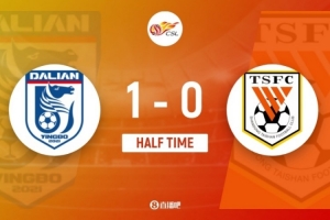 上半場(chǎng)比賽結(jié)束,大連英博1-0山東泰山。