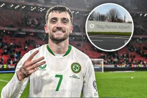 在愛(ài)爾蘭最后3輪全勝,晉級(jí)附加賽的過(guò)程中,最后兩場(chǎng)獨(dú)進(jìn)5球的前鋒帕洛特?zé)o疑是最大功臣。對(duì)此,執(zhí)行國(guó)家隊(duì)迎來(lái)送往任務(wù)的愛(ài)爾蘭都柏林機(jī)場(chǎng)開玩笑地將官方社媒名稱改為“特洛伊·帕洛特機(jī)場(chǎng)”,并連發(fā)多條動(dòng)態(tài)慶祝: