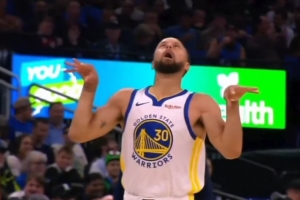 GIF-庫(kù)里投中三分后扮鬼臉嘲諷薩格斯