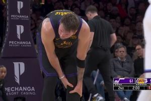 GIF-東契奇落地時(shí)被喬治壓了一下??!
