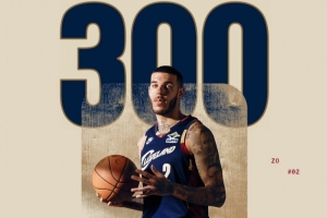 比賽首節(jié),騎士球員朗佐·鮑爾替補(bǔ)出戰(zhàn)。球隊官方也曬出海報,祝賀鮑爾達(dá)成生涯300場里程碑。
