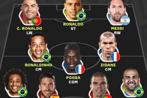 體育資訊11月20日訊 前法國國腳、前皇馬前鋒、2022年金球先生本澤馬,日前評(píng)選出自己心目中的足壇歷史夢(mèng)幻11人陣。其中,梅西、C羅、大羅三人領(lǐng)銜鋒線,小羅、齊達(dá)內(nèi)、博格巴坐鎮(zhèn)中場(chǎng)。
