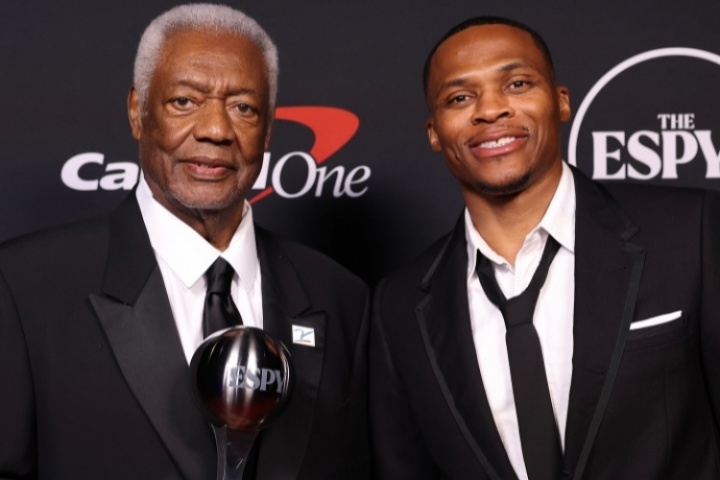 體育資訊07月20日訊 近日,NBA球員拉塞爾-威斯布魯克作為嘉賓在ESPY頒獎(jiǎng)典禮上為奧斯卡-羅伯特森頒發(fā)了阿瑟-阿什勇氣獎(jiǎng)杯。