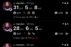 本場(chǎng)比賽哈登獨(dú)木難支,16中8,三分11中5,罰球12中10砍下31分5籃板8助攻2搶斷。