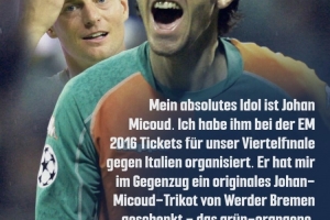 克羅斯還講述了他與米庫交換禮物的事情:“2016年歐洲杯在法國舉行時,我為他安排了我們對陣意大利的四分之一決賽門票。作為回報,他送給我一瓶他自己種植的葡萄酒和一件當(dāng)年他在不萊梅穿的原版球衣。”