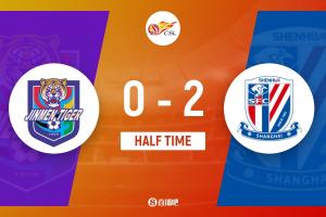 上半場(chǎng)補(bǔ)時(shí)5分鐘,津門虎0-2申花。
