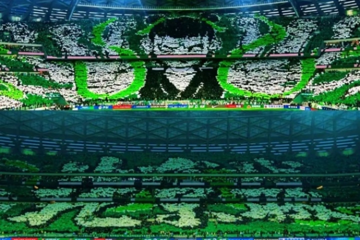 3.全場(chǎng)一圈的tifo是中國(guó)職業(yè)體育歷史上看臺(tái)視覺(jué)最震撼的一次。