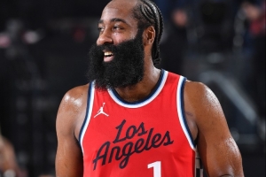 全場(chǎng)比賽,快船球星哈登出戰(zhàn)35分鐘,26中17,三分16中10得到55分3板7助攻1搶斷。